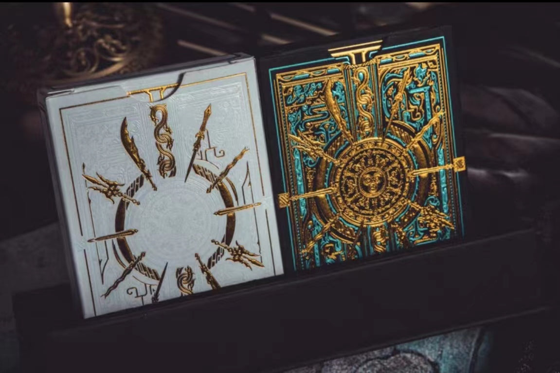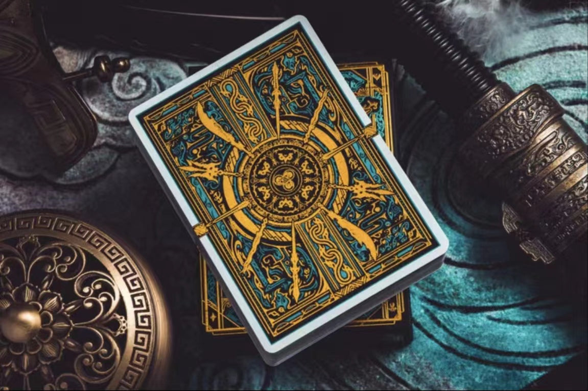 "The exclusive artworks of this deck of playing cards pay tribute to the 14th-century historical novel Romance of the Three Kingdoms. One of the “Four Great Classical Novels of Chinese literature” and a household name in China until today, the story is set in the turbulent years from 169 to 280 AD, during which the country split into three power blocs: the states of Wei, Shu, and Wu (the Three Kingdoms period, 220~280 AD). The novel not only depicts the incessant battling of the three states over dominance but also romanticizes the personal lives of historical figures, introducing close to a thousand heroic characters, 13 of which are featured in this deck. Historical as well as mythical, the legendary Romance has inspired countless artistic renditions including the one we now present." |